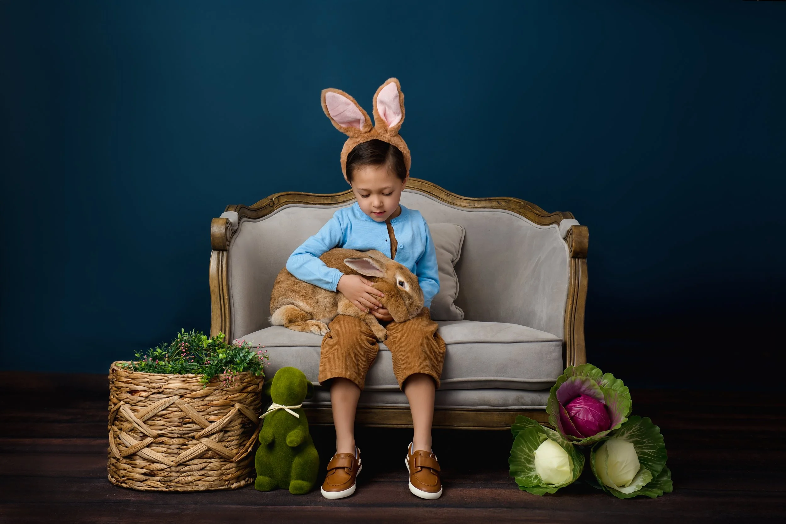 For babies, I provide baskets they can safely sit in while interacting with the bunnies, creating some of the most heartfelt and timeless images.